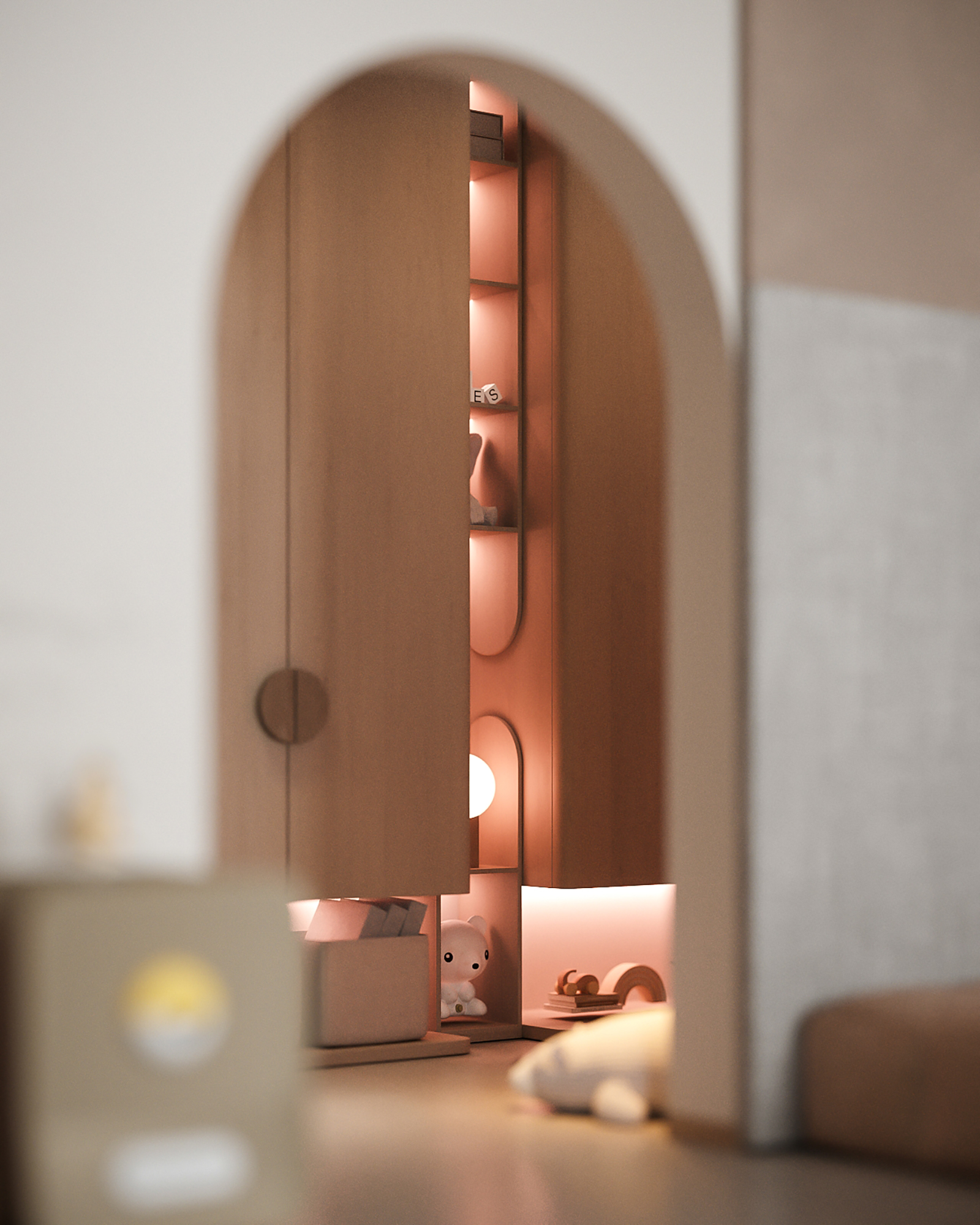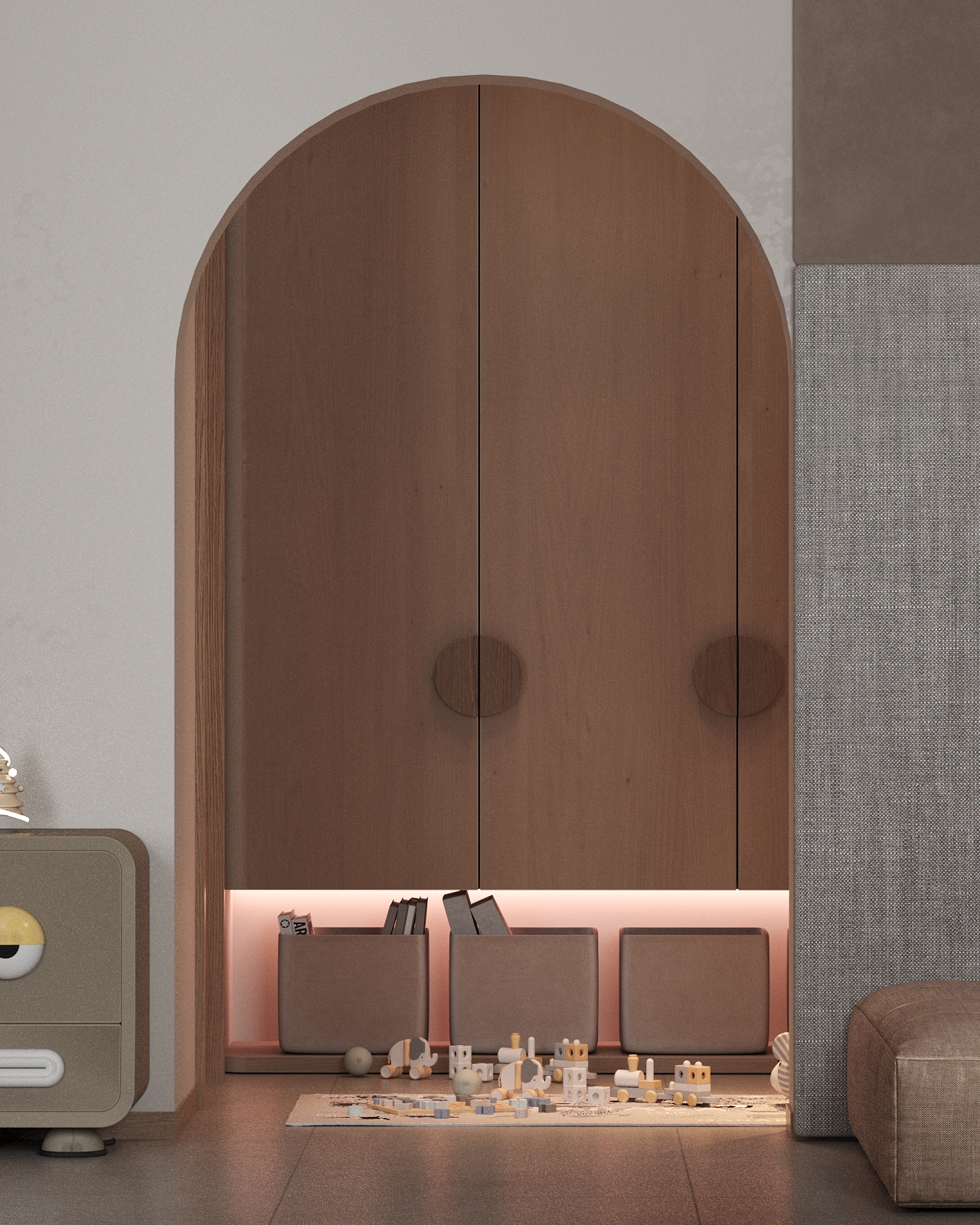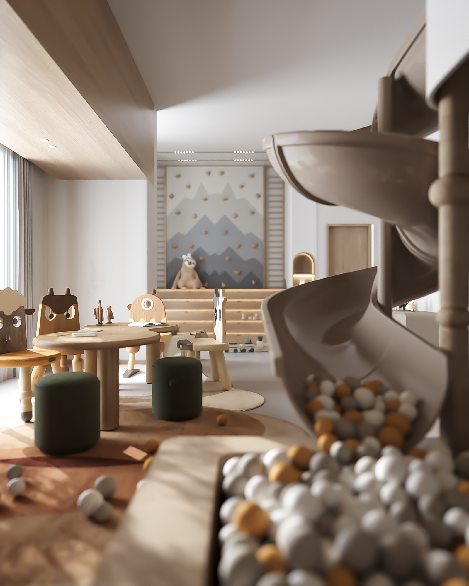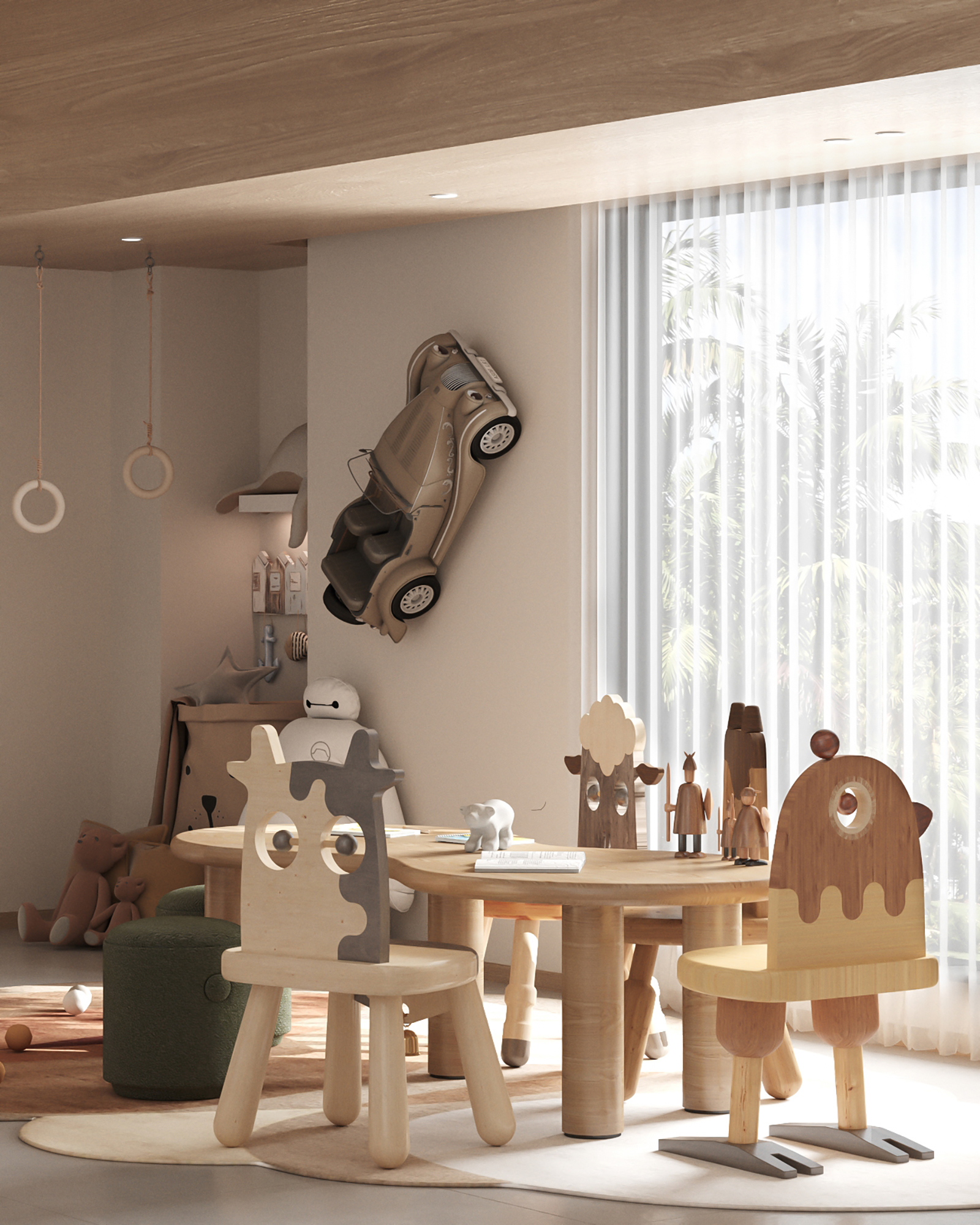 From the first glance, the room captivates with vibrant yet soothing colors, soft textures, and clever storage solutions. Every element has been carefully curated to create an environment that is safe, stimulating, and visually inspiring for children of all ages.