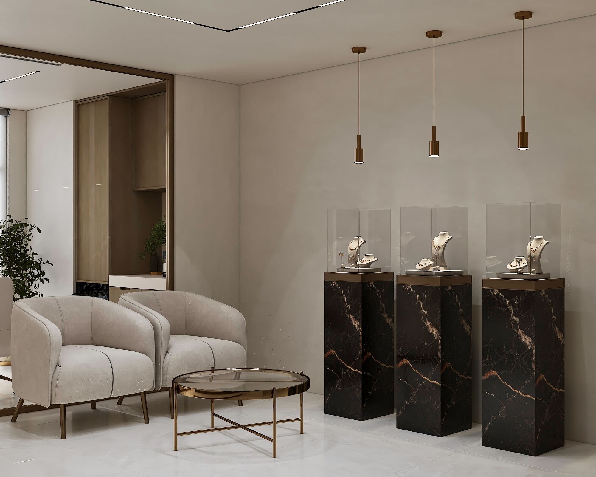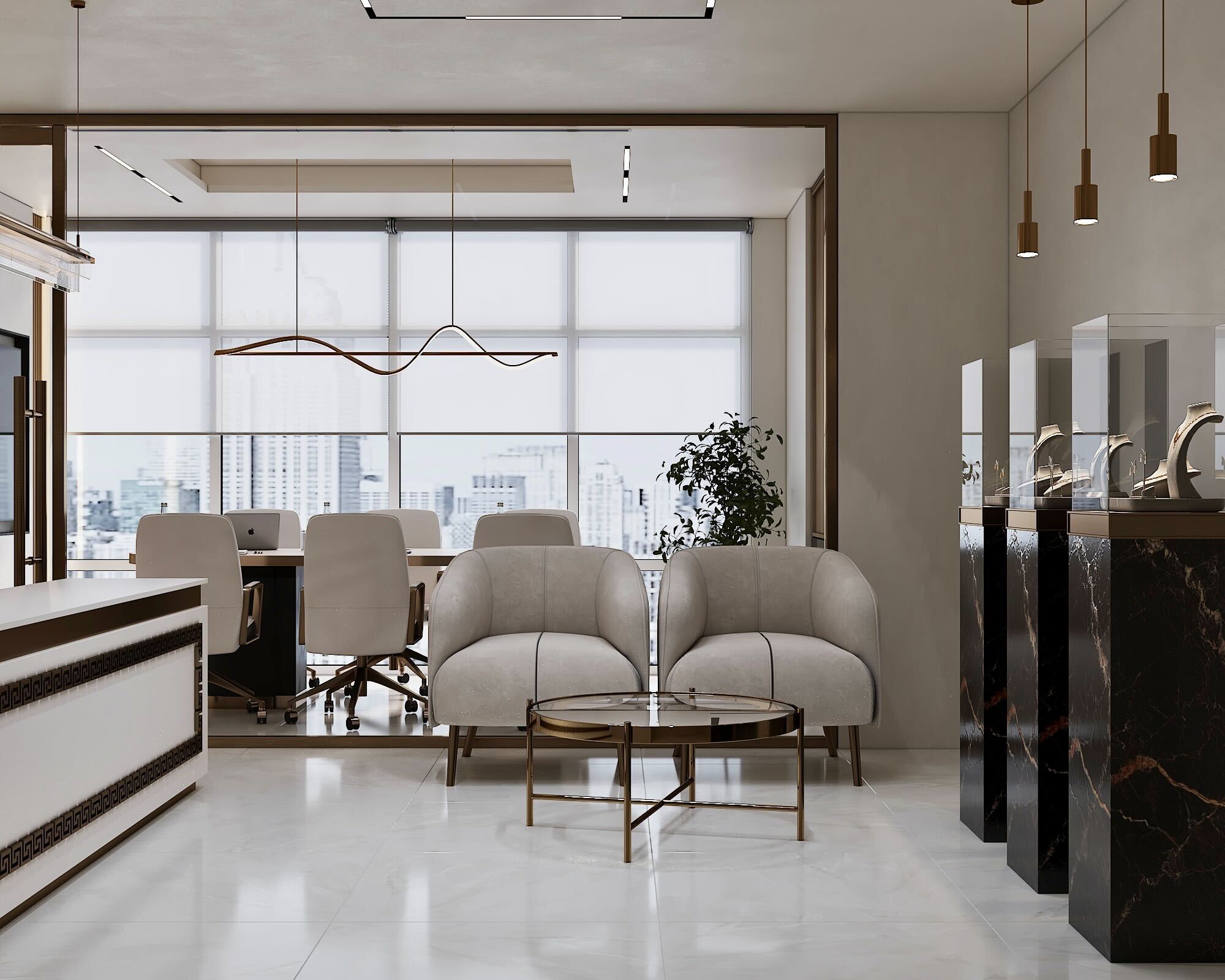 Step into a workspace where professionalism meets modern sophistication. This jewellery office has been designed to reflect elegance, functionality, and comfort, creating an environment that is both welcoming for clients and inspiring for the team. With a carefully curated palette of beige and brown tones, the interior radiates warmth, calm, and understated luxury.