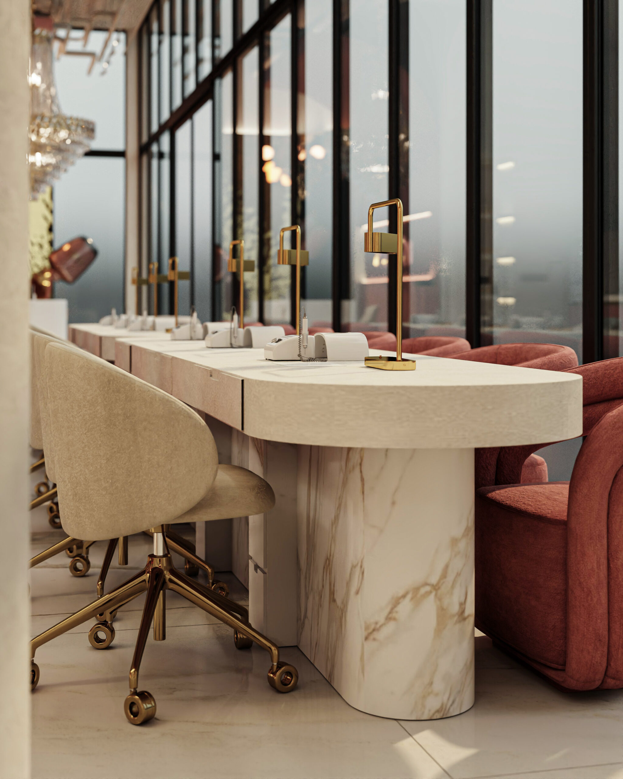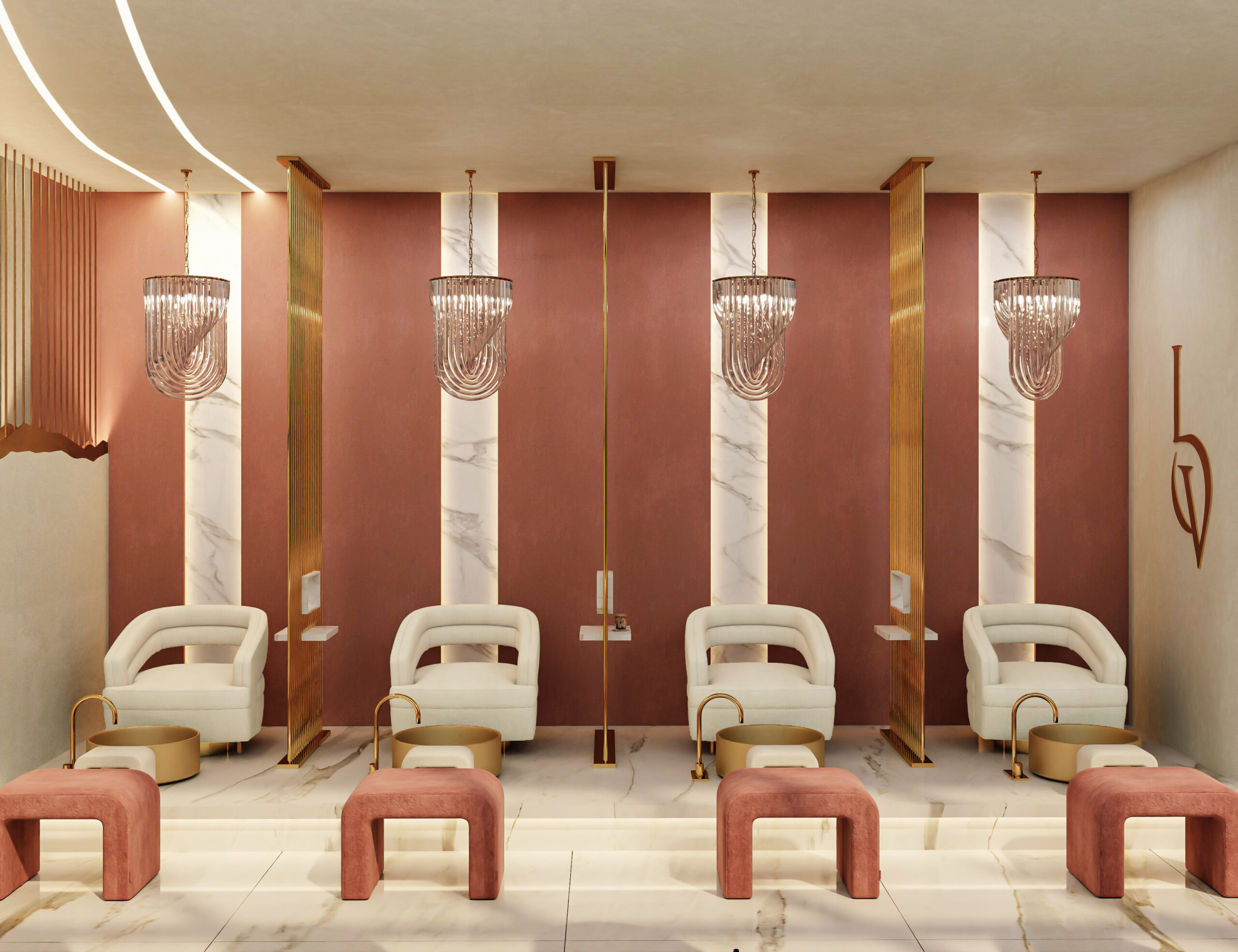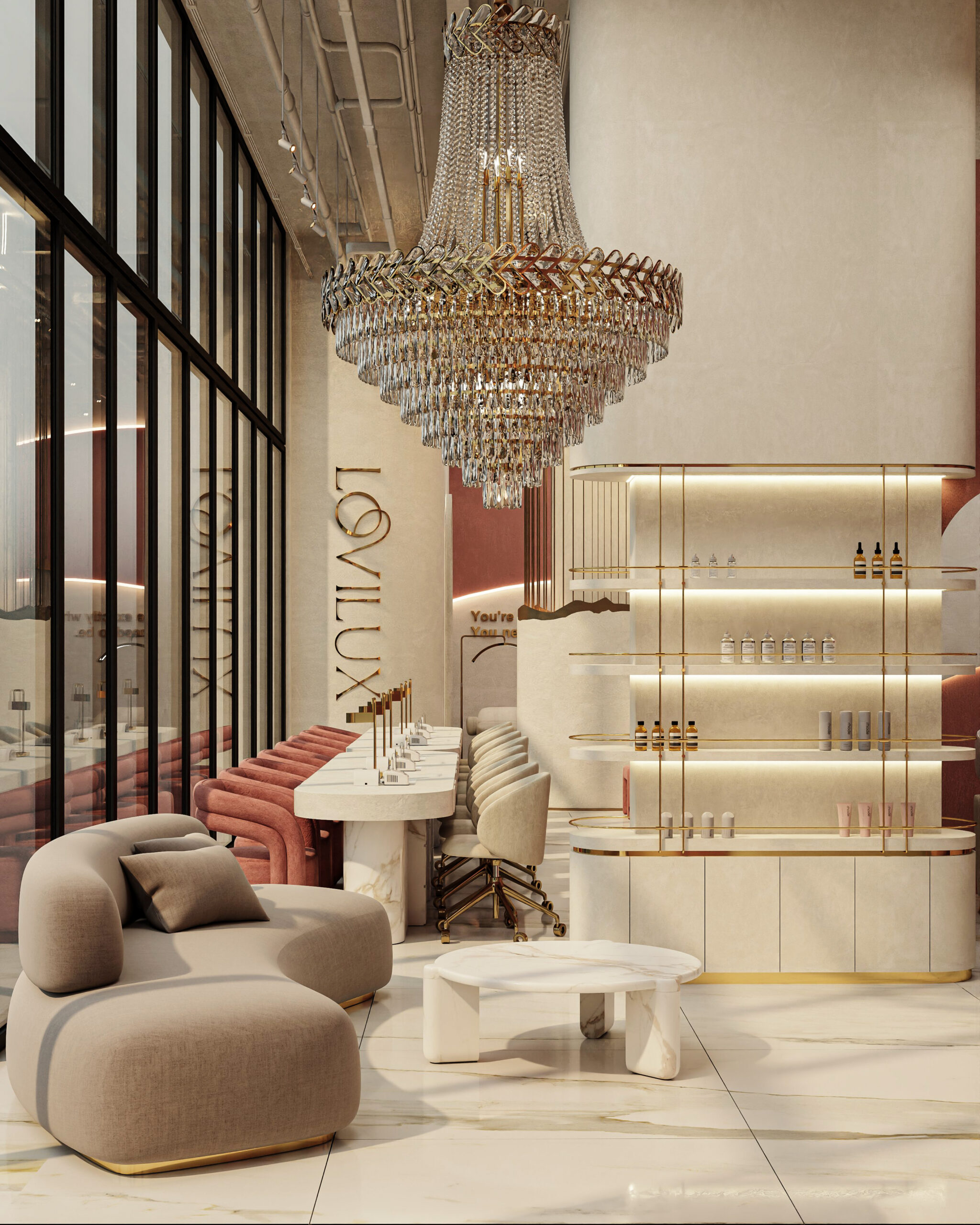 Every corner of the salon reflects attention to detail, from plush seating areas and customized service stations to ambient lighting and elegant décor elements. The design emphasizes a luxurious yet welcoming atmosphere, where both style and practicality coexist seamlessly.